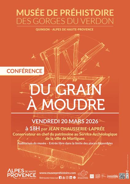 Par Jean Chausserie-Laprée, conservateur en chef du patrimoine au Service Archéologique de la ville de Martigues Nouvelle conférence au Musée de Préhistoire qui présentera les instruments de mouture utilisés en Provence à l'Age du Fer.