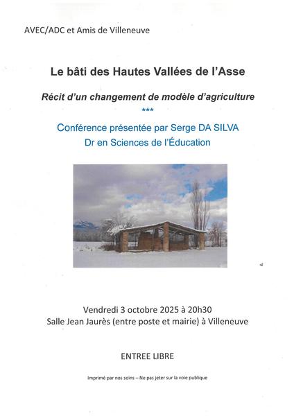 Conférence " Le bâti des Hautes Vallées de l’Asse"