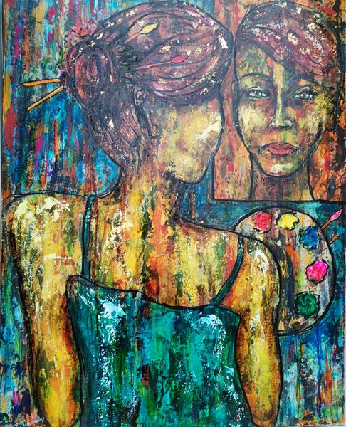 Jacqueline Tarchala : Née le 8 septembre 1950 à Annecy sur Crusne et habite à Gréoux-les-Bains. Après des études classiques et une carrière d'institutrice, elle a toujours nourri une passion pour l'expression artistique. Son parcours s'est enrichi de nombreux stages et rencontres. Elle utilise principalement l'huile, l'acrylique, l'encre et la résine, jouant avec les couleurs tout en conservant des références classiques. Le portrait est son thème préféré. Régine de Bastiani : Ses oeuvres parfois déconcertantes, sont le résultat d'un processus libre, où le corps, les matériaux et le hasard jouent un rôle essentiel. Pour elle, la peinture naît de l'inconscient, de l'imprévu et de l'interaction entre les différents éléments : le geste, la matière, l'atmosphère qui créent un espace de liberté où se forme l'oeuvre.