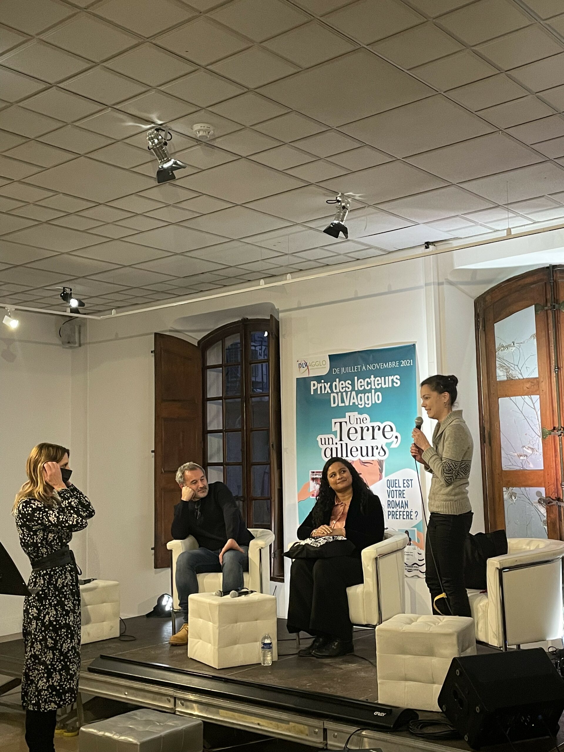 Sandra Faure, Vice-Présidente déléguée à la Culture a ensuite annoncé le grand gagnant de l’édition 2021 du Prix des lecteurs DLVAgglo, ou plutôt la grande gagnante puisqu’il s’agit de Marie Charrel, pour son roman « Les danseurs de l’aube » paru aux Éditions de l’Observatoire. Félicitations à elle !