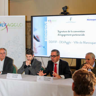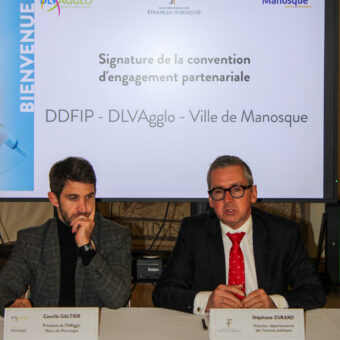 Ce mercredi, Camille Galtier, Président de DLVAgglo et maire de Manosque, et Stéphane Durand, Directeur départemental des finances publiques, ont signé une nouvelle convention de partenariat entre DLVAgglo et la DDFIP des Alpes-de-Haute-Provence.