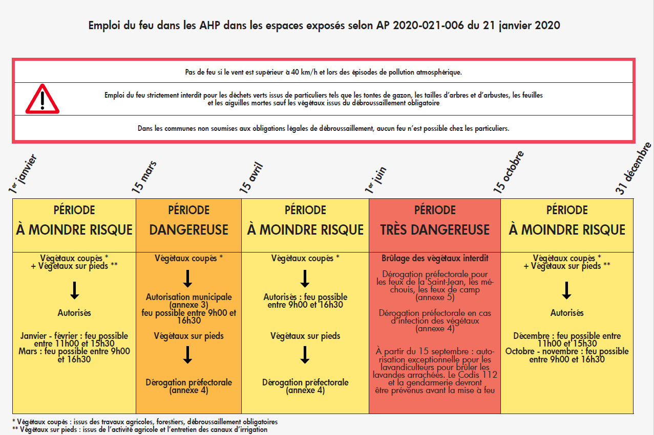 En application du règlement sanitaire départemental et de l’arrêté préfectoral n°2020-021-006 le brûlage des déchets verts produits par les particuliers, les professionnels et les collectivités est interdit quelle que soit la période de l’année.